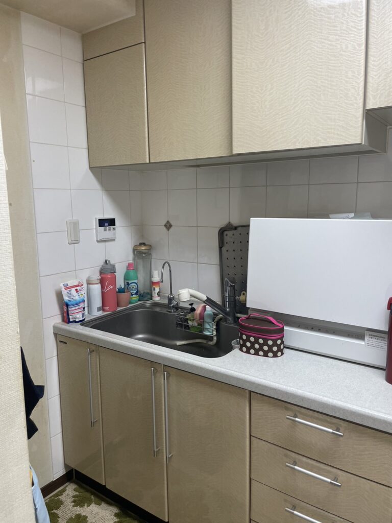 シンクの場所がちょうど良いシステムキッチンを選び、食洗機をシンクの左に置けるようにしました。