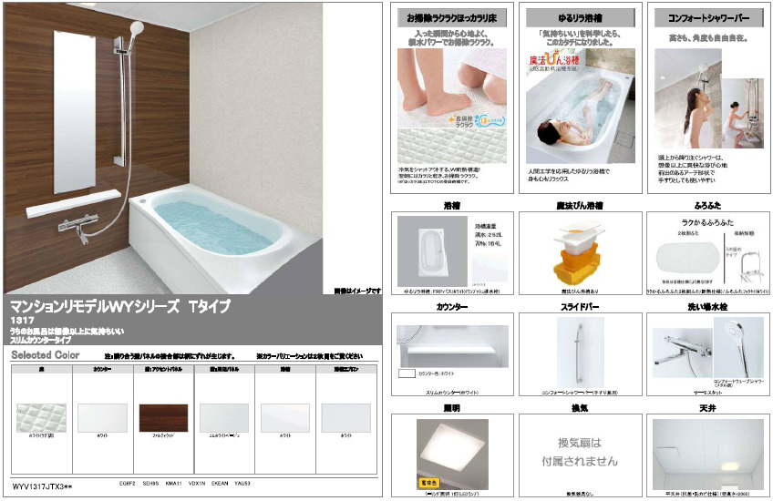 | 取り付け製品名 | マンションリモデルバスルーム WYシリーズ Tタイプ |