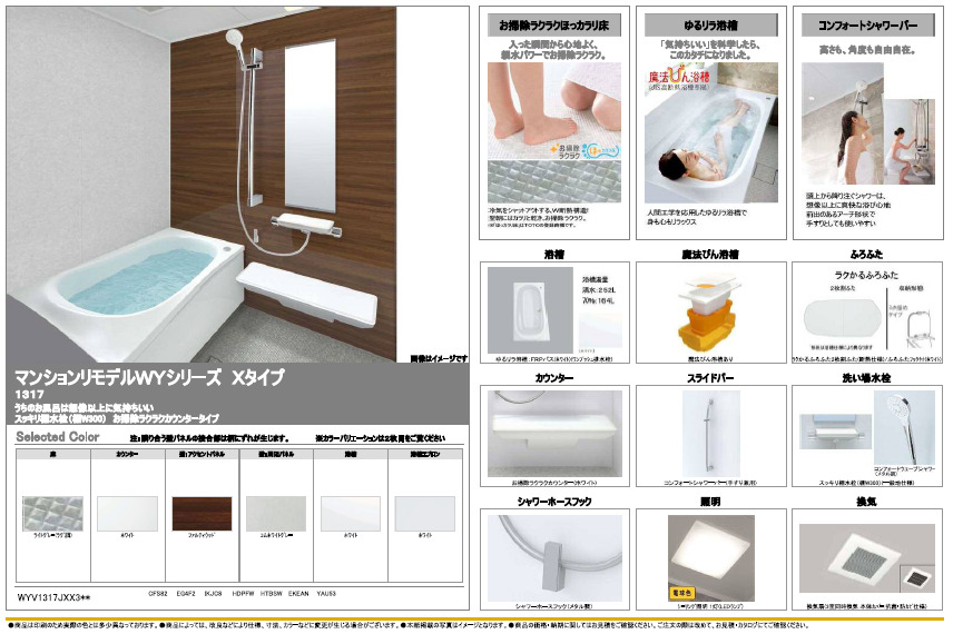 | 取り付け製品名 | マンションリモデルバスルーム WYシリーズ Xタイプ |