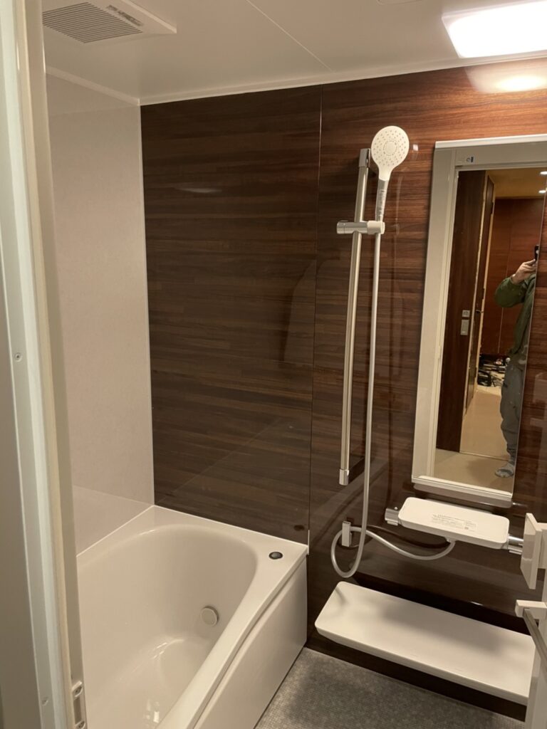 シンプルな無地で簡素なデザインのお風呂が、ユニットバスをリフォームして、スタイリッシュで恰好が良いデザインになりました。