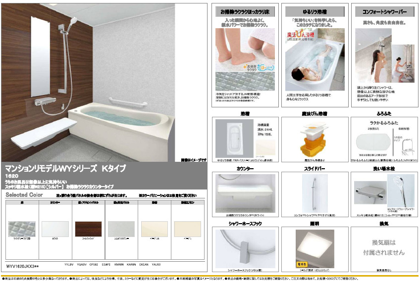 | 取り付け製品名 | TOTO マンションリモデルバスルーム WYシリーズ Kタイプ |