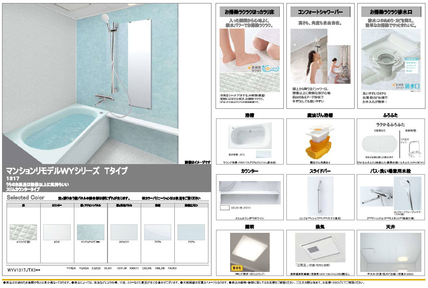 | 取り付け製品名 | TOTO マンションリモデルバスルーム WYシリーズ Tタイプ |