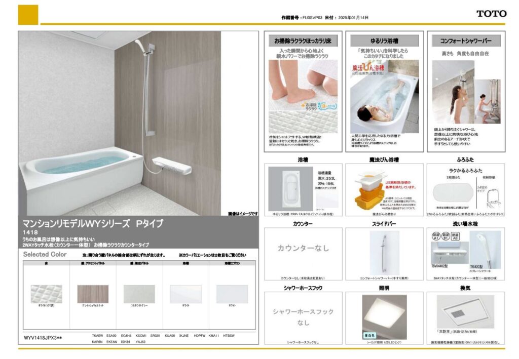 取り付け製品名 | TOTO マンションリモデルWYシリーズ Pタイプ |