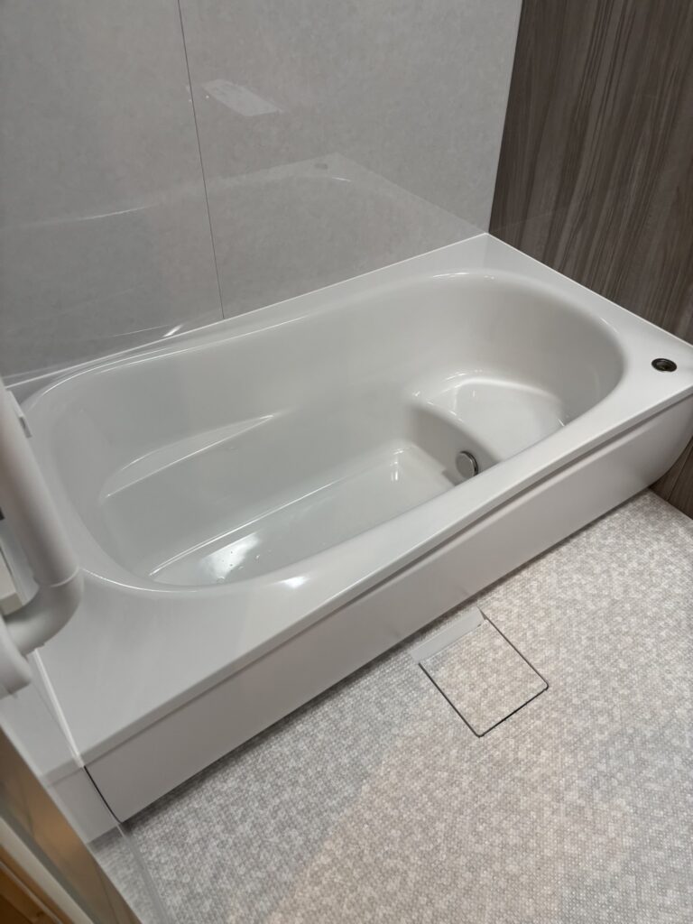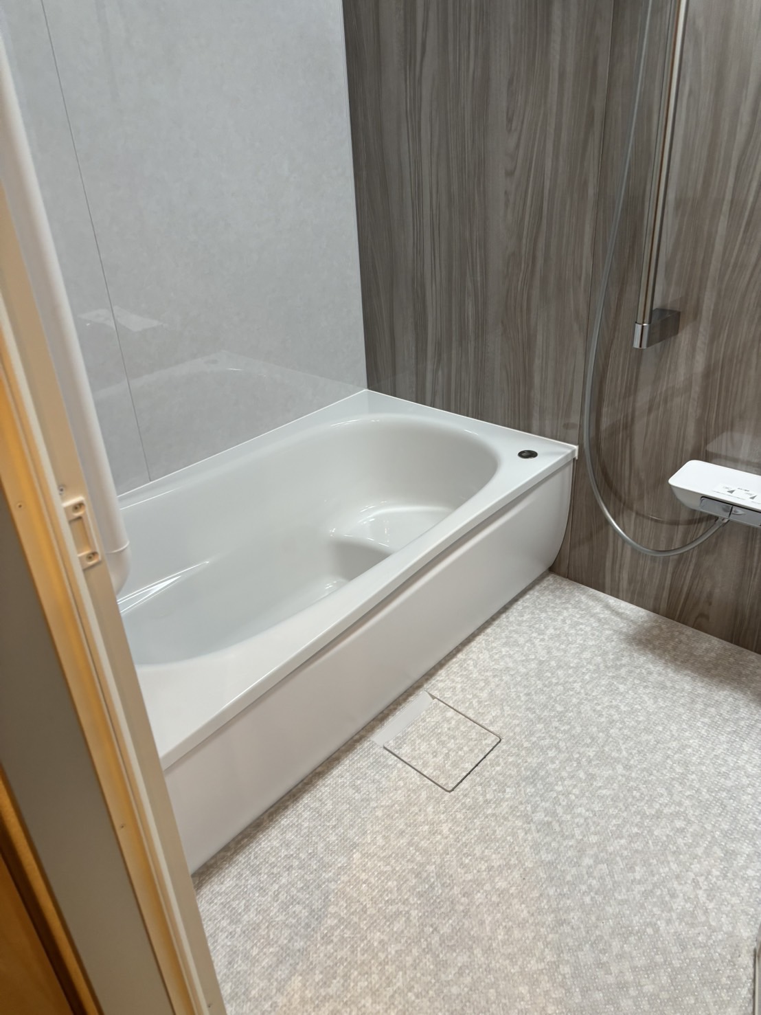 今回採用したのは、TOTOマンションリモデルWYシリーズ。壁面を「グレイッシュウォルナット」で仕上げ、以前の雰囲気を残しつつ、よりシックで上質な印象を実現しました。浴槽は以前よりスッキリとした形状で出入りがしやすく、空間全体が広々と感じられます。また「ほっカラリ床」は柔らかな踏み心地と乾きやすさで毎日快適に。見た目と機能の両面でワンランク上の浴室に生まれ変わりました。