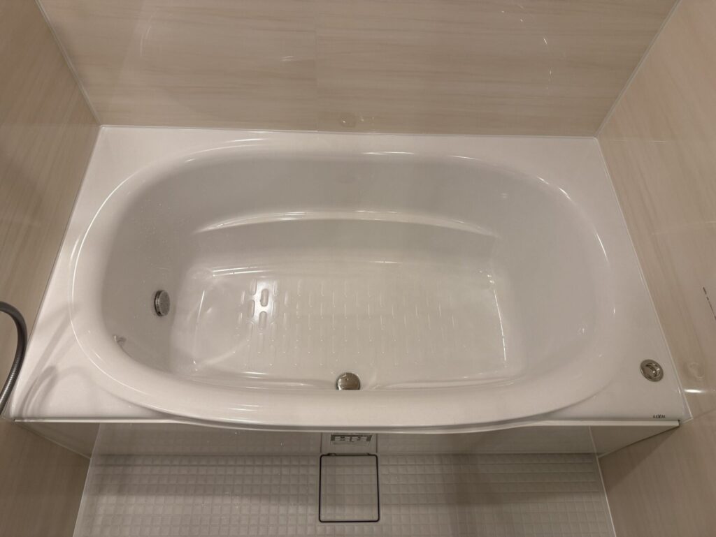 壁パネルにはウッドグレインライトを選びました。やさしい木目柄が白い壁パネルと調和し温かみのある穏やかな空間を演出します。機能面では、サーモバスSによりお湯が冷めにくく快適な長湯が可能。さらにキレイサーモフロアはヒヤッとしにくく汚れも落ちやすいためお手入れも簡単です。デザイン性と快適性を兼ね備えた仕上がりです。