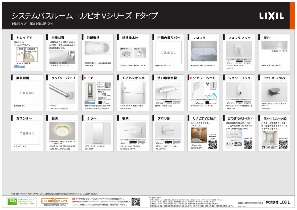 取り付け製品名 | LIXIL システムバスルーム リノビオVシーリズ |