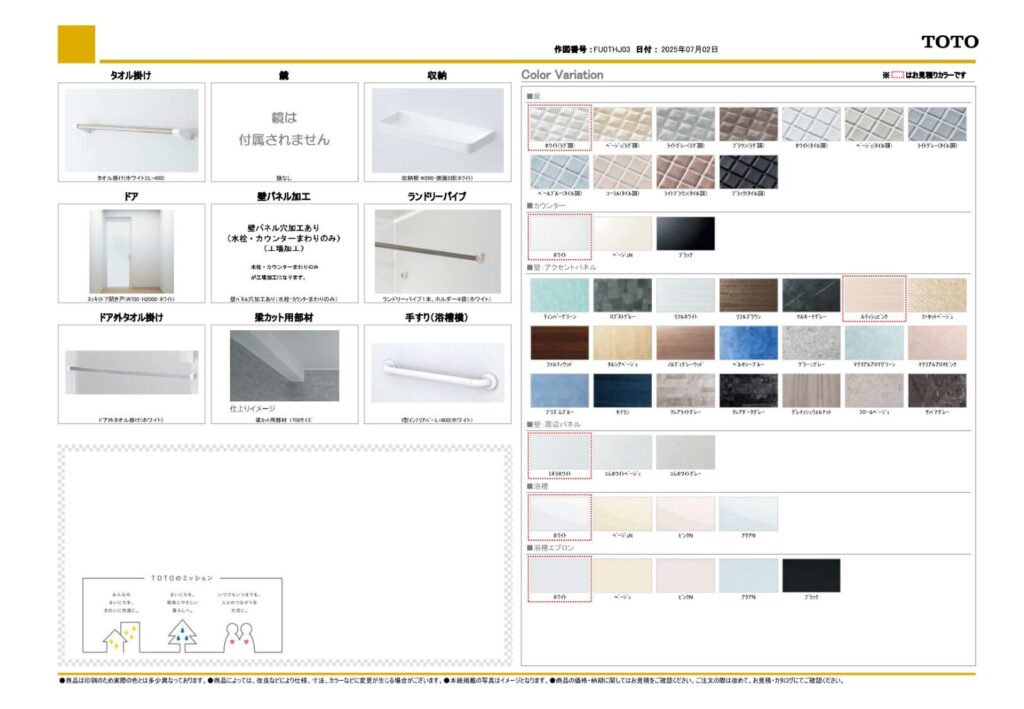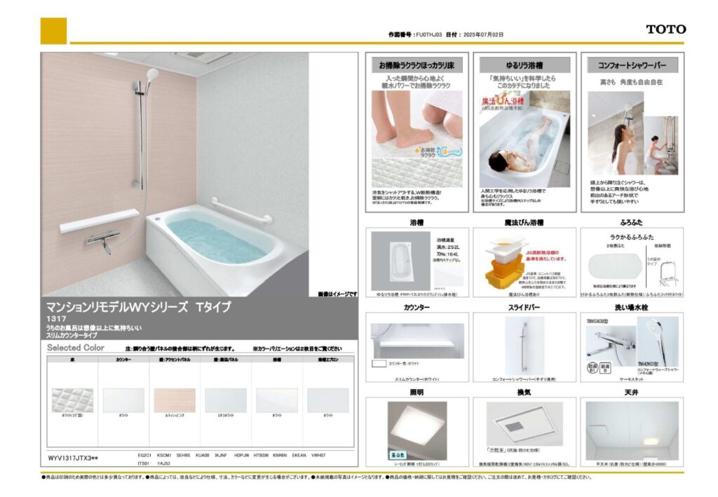 取り付け製品名 | TOTO マンションリモデルWYシリーズ |