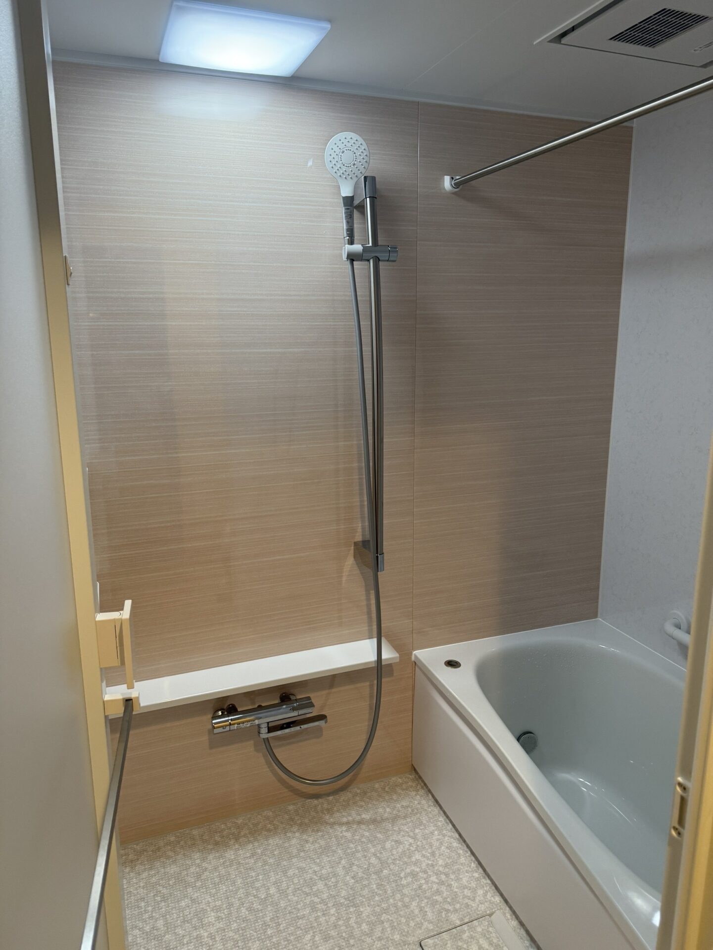 TOTOマンションリモデルWYシリーズを採用し、アクセントパネルにはルティッシュピンクを選びました。やわらかな色合いが浴室全体を包み込みシンプルながらも可愛らしい印象に。浴槽にはゆるリラ浴槽を搭載しており、自然な姿勢でゆったりとおくつろぎいただけます。