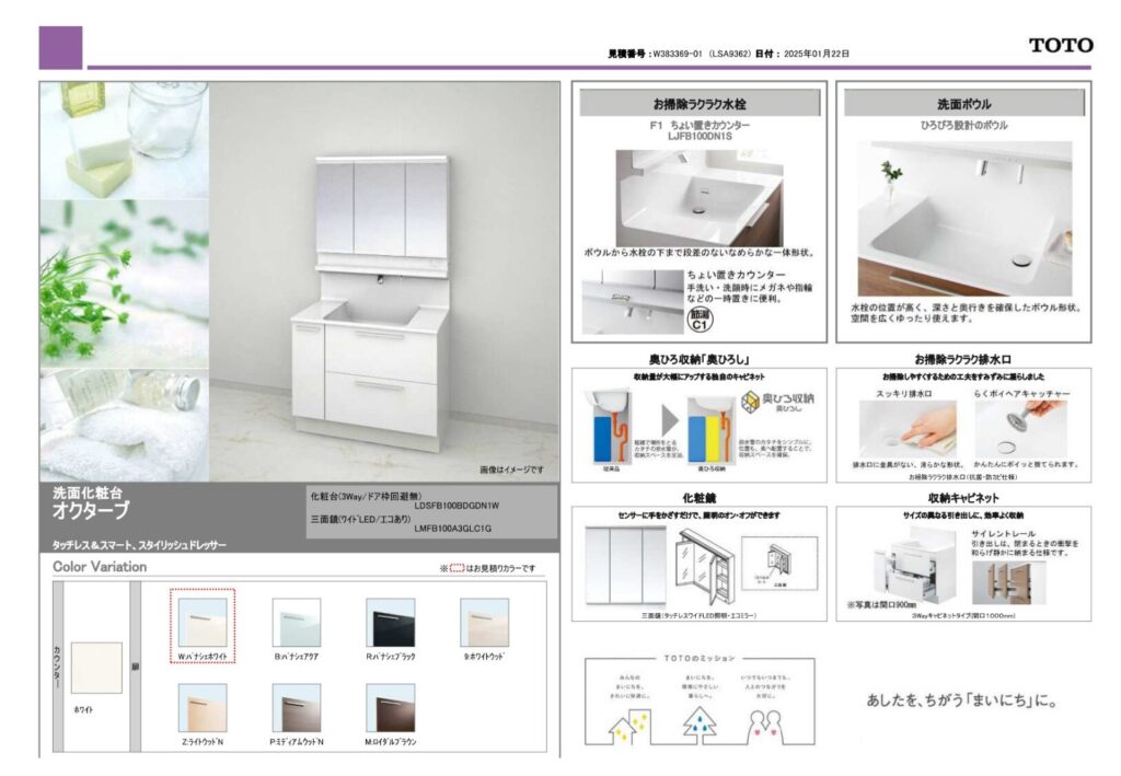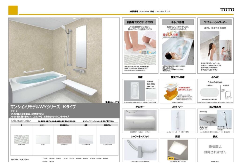 取り付け製品名TOTO マンションリモデルWYシリーズ/TOTO オクターブ