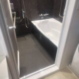 落ち着いたトーンのリノビオVシリーズが浴室を上質に演出。シンプルなラインと石調パネルがホテルのような雰囲気を作ります。トイレにはスタイリッシュなベーシアシャワートイレを採用し空間全体をすっきりと統一してくれます。