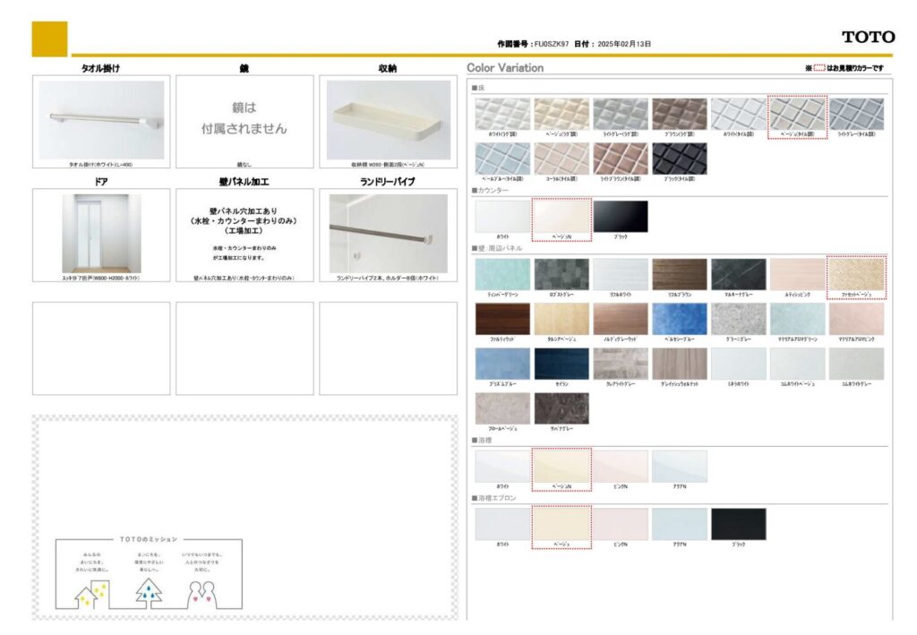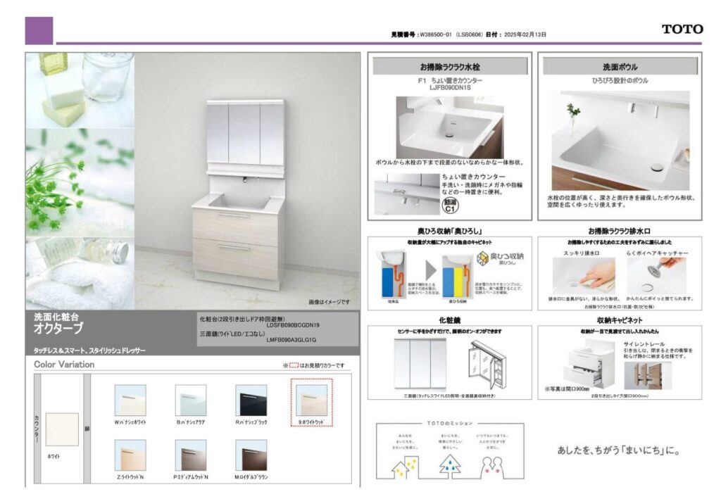 取り付け製品名 | TOTO WYシリーズ/TOTO 洗面化粧台オクターブ |
