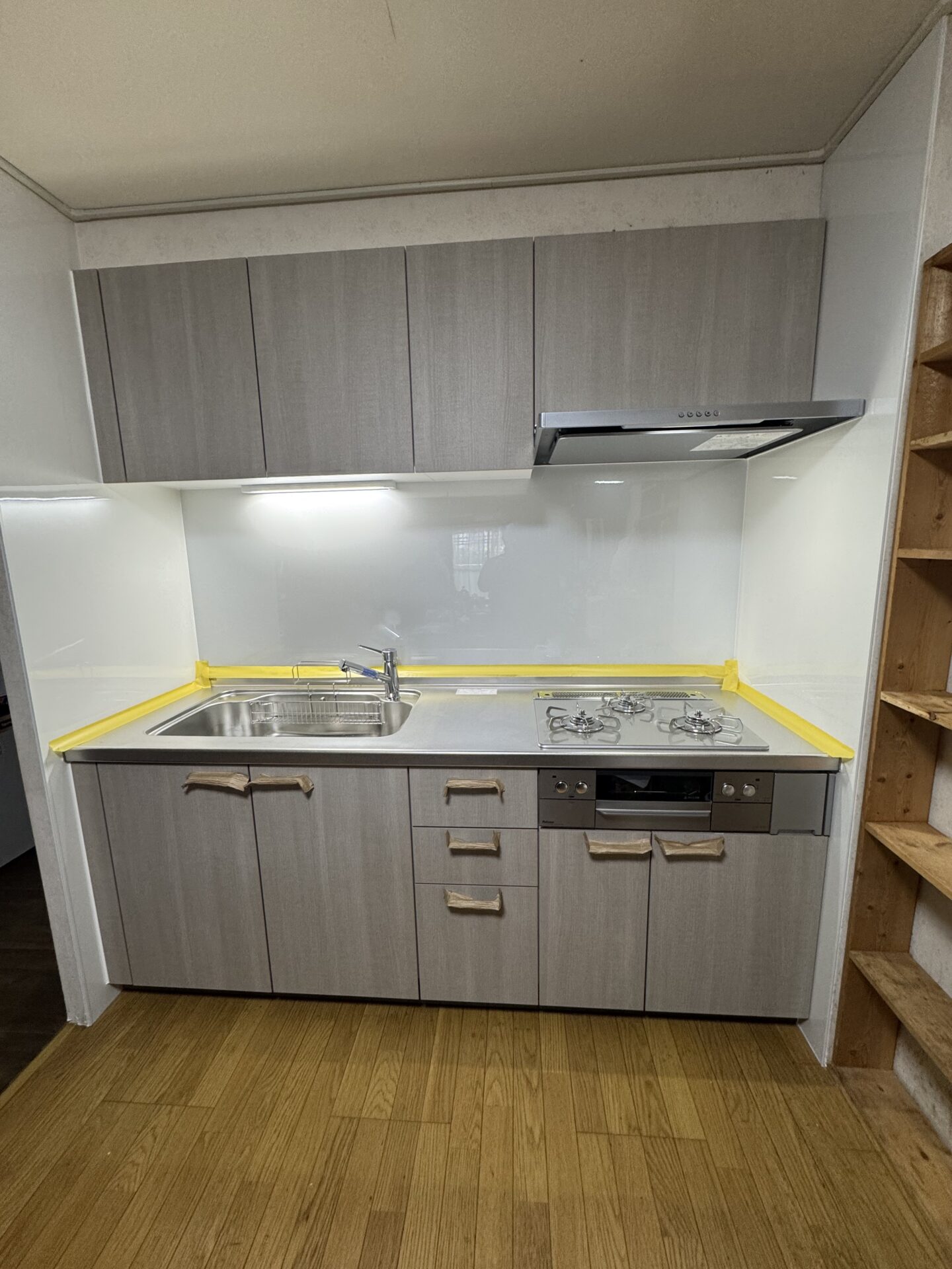 ラスティックアッシュの木目がもつ落ち着いた質感とステンレスワークトップのシャープな輝きが見事に調和して、ナチュラルでありながらモダンな印象を与える上品なキッチンに仕上がりました。