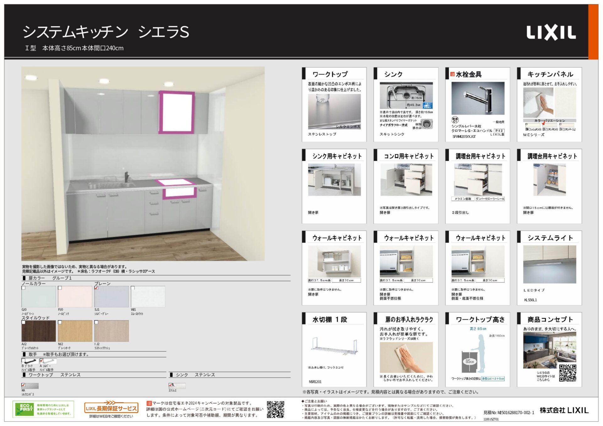 シルバーグレーの扉とステンレスの輝きが織りなす静かな存在感があります。LIXILシエラSならではのマットな質感が光の当たり方で微妙に変化し上品な奥行きを生み出します。