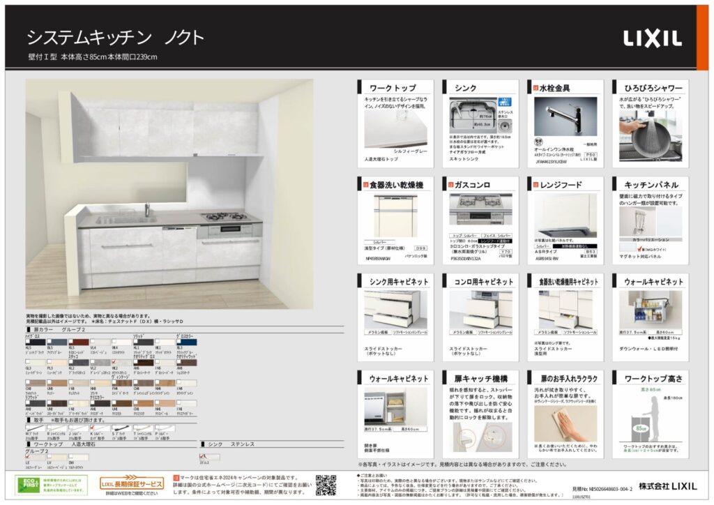 ホワイトスタッコ扉とシルフィーグレーのワークトップが織りなす上品なコントラスト。マットな質感が光をやわらかく受け止め落ち着きのある美しさを演出します。