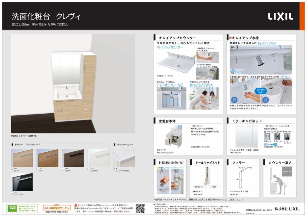 | 取り付け製品名 | LIXIL リノビオVシーリズ/LIXIL ベーシアシャワートイレ/LIXIL 洗面化粧台 クレヴィ |