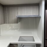 トッコモカクリームの扉は汚れが目立ちにくい仕上げを選定し、取っ手や隙間も拭きやすい納まりにしています。見た目のスタイリッシュさを維持しつつ忙しい家庭でも綺麗さを長く保てる仕様です。