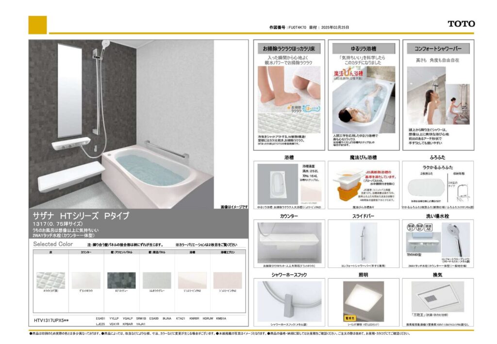 | 取り付け製品名 | TOTO サザナ HTシリーズ Pタイプ |
