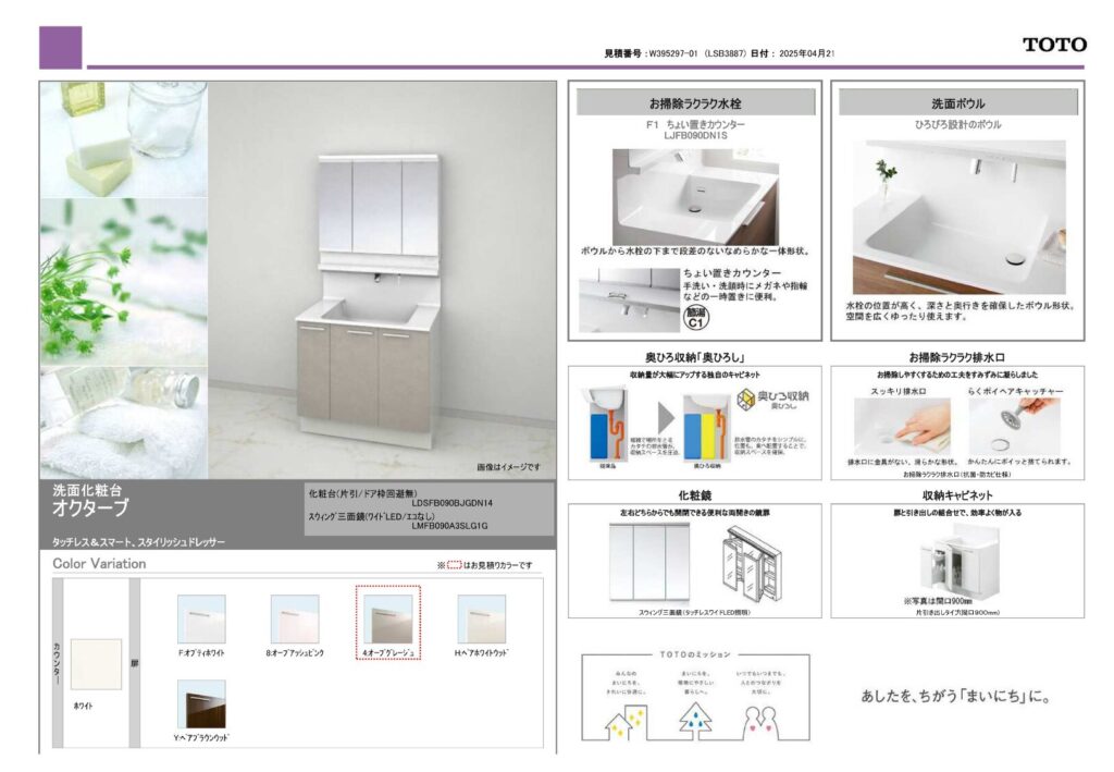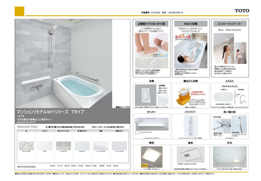 | 取り付け製品名 | TOTO マンションリモデルWYシーズン Tタイプ /TOTO オクターブ |