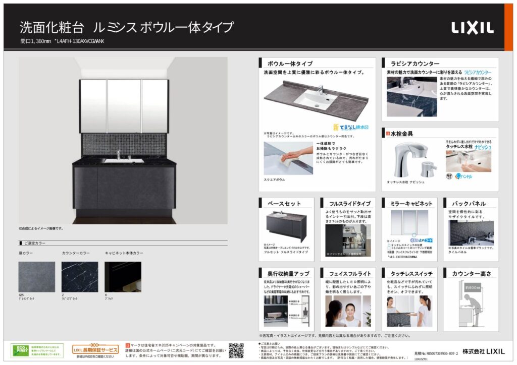 | 取り付け製品名 | LIXIL ルミシス ボウル一体タイプ |