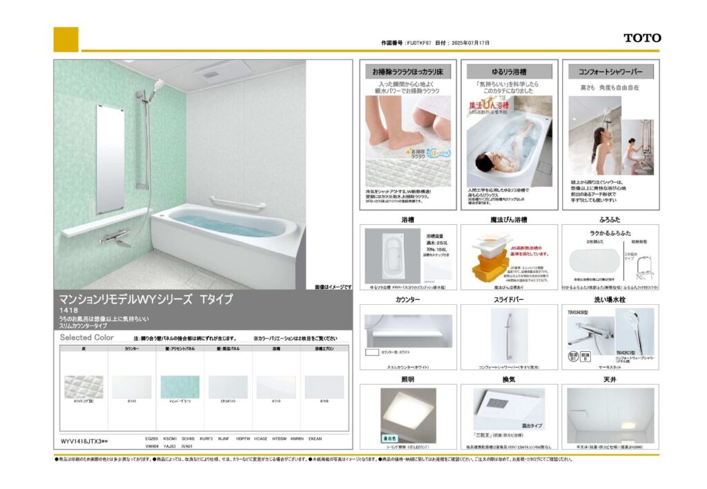 | 取り付け製品名 | TOTO マンションリモデルWYシリーズ Tタイプ |