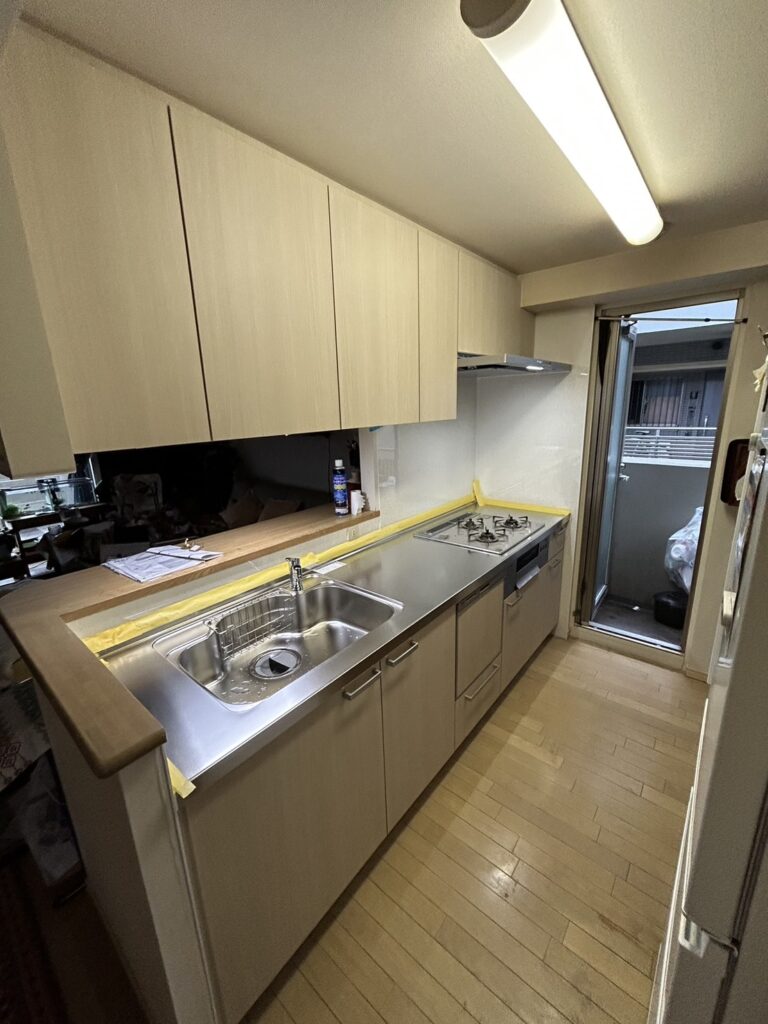 ペールウッドの扉とステンレスワークトップという組み合わせは、素材自体も耐久性が高く日常使用による劣化が目立ちにくいです。