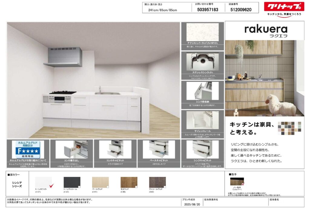 アクリストーンワークトップのやわらかな質感が加わることで、白一色でも冷たくなりすぎず、上品さを感じられる仕上がりです。