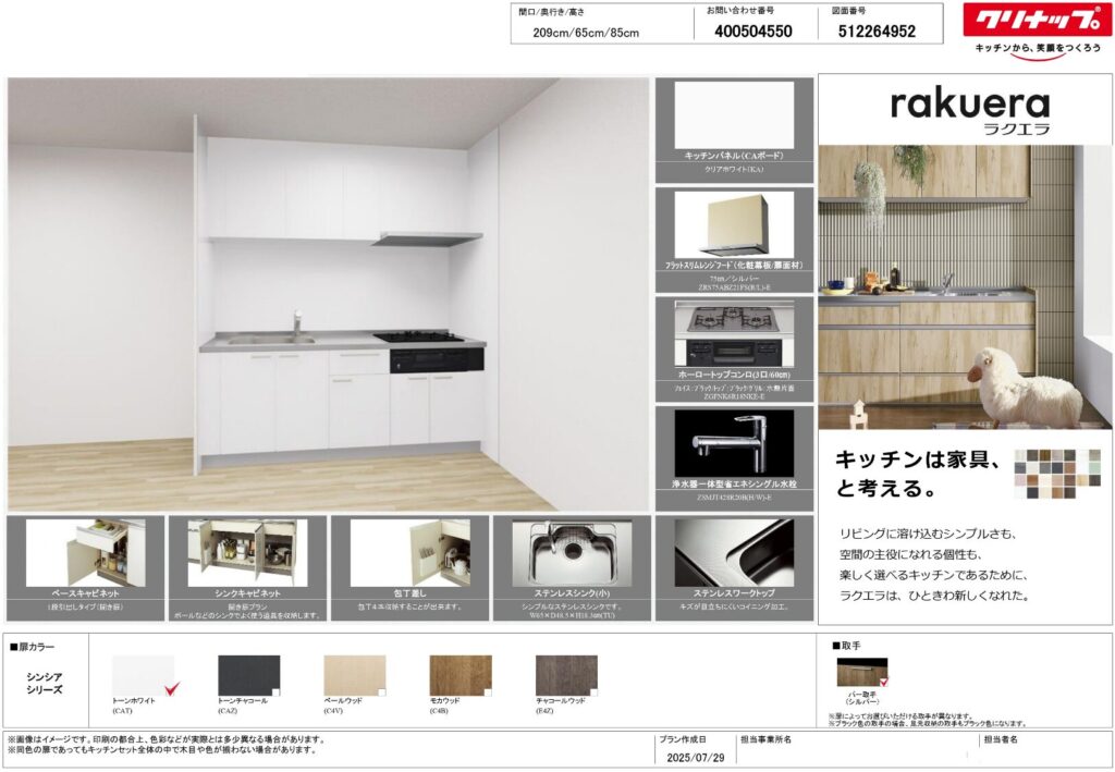 扉はトーンホワイトで圧迫感を抑えた印象に仕上がっています。ステンレスのワークトップがさりげなく光を反射し、白の中にほどよい変化が生まれています。
