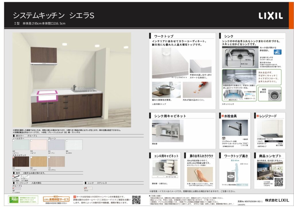 | 取り付け製品名 | LIXIL システムキッチン シエラS |