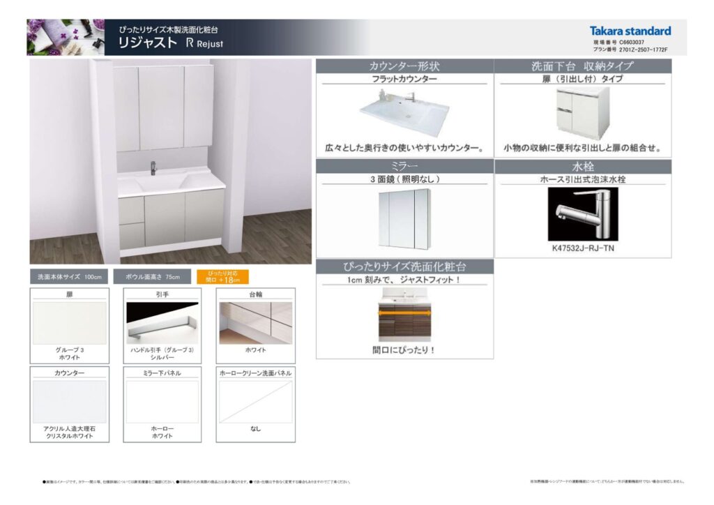 | 取り付け製品名 | リクシル シエラS/タカラスタンダード リジャスト |