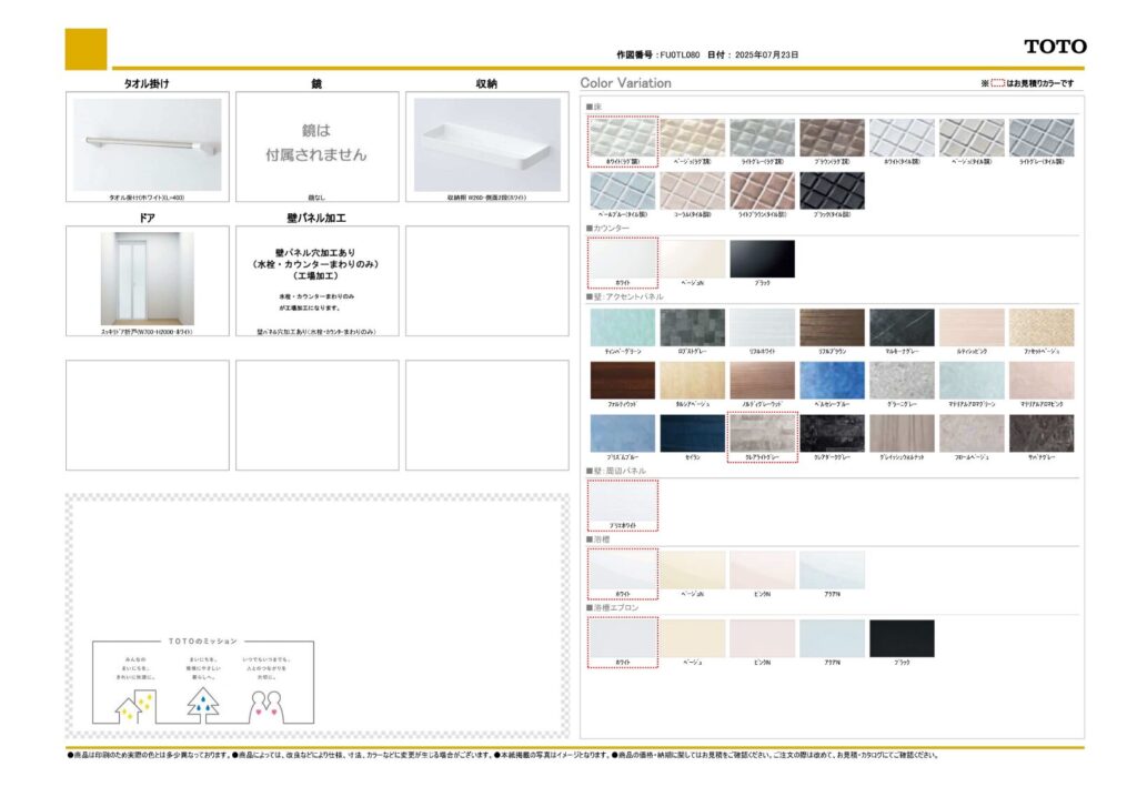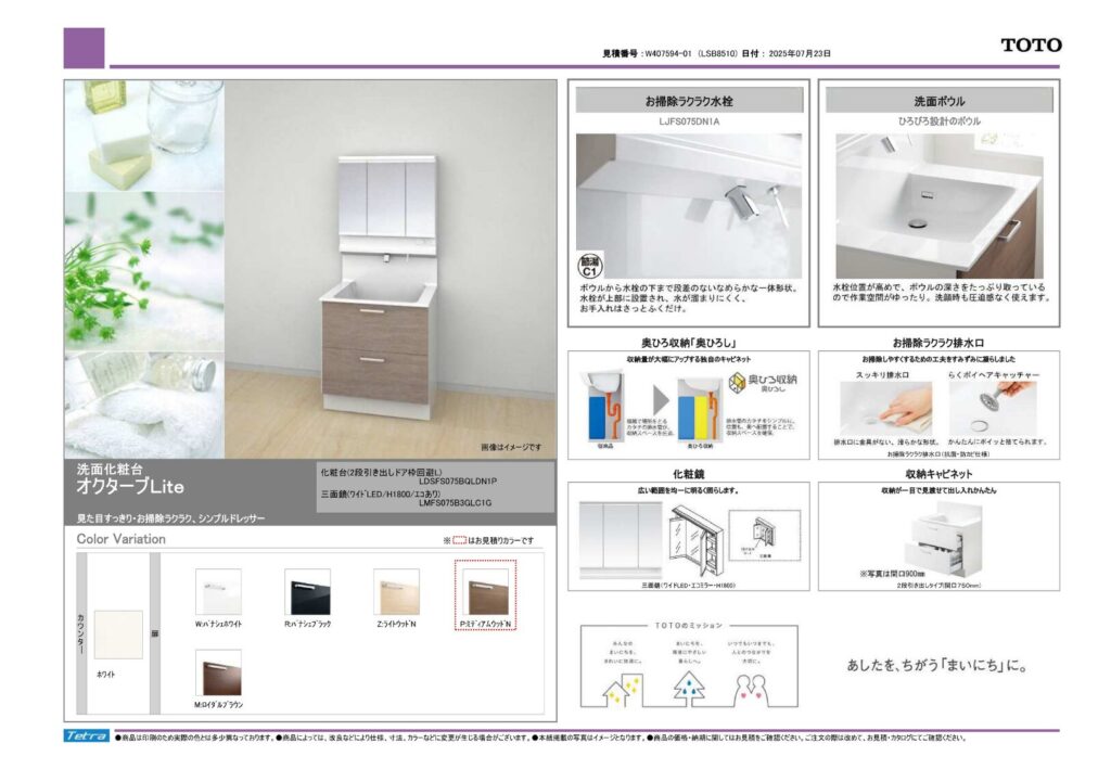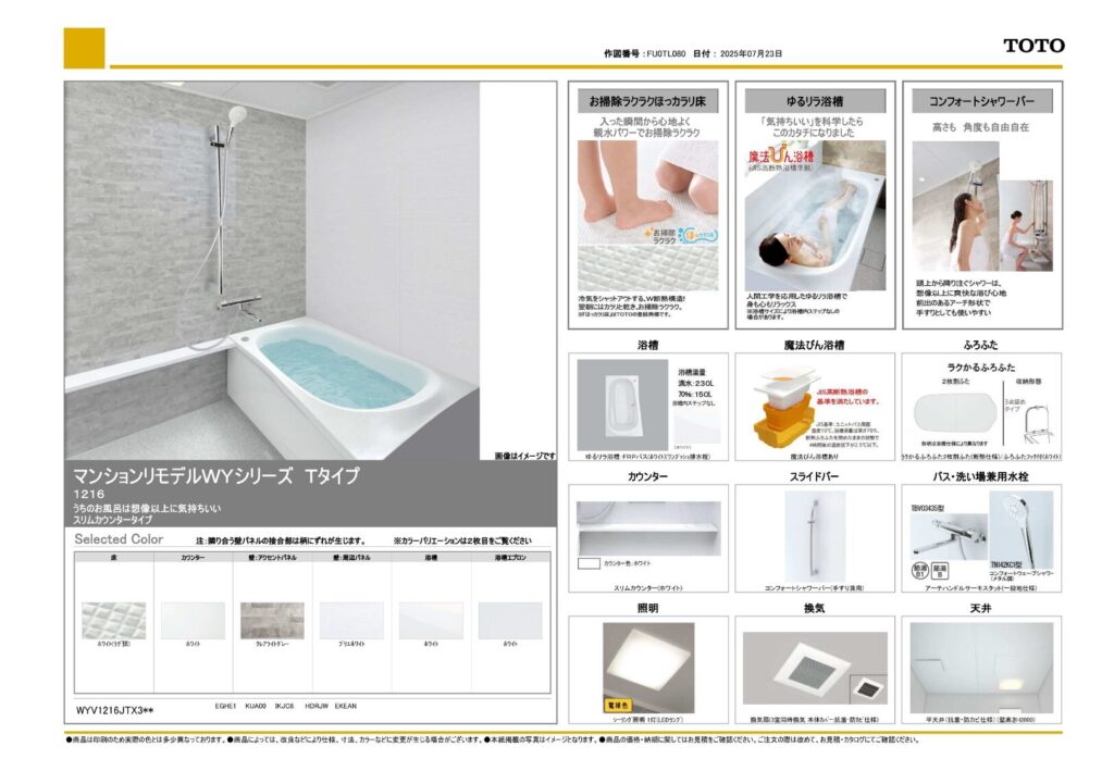 取り付け製品名TOTO マンションリモデルWYシリーズ|TOTO オクターブLite