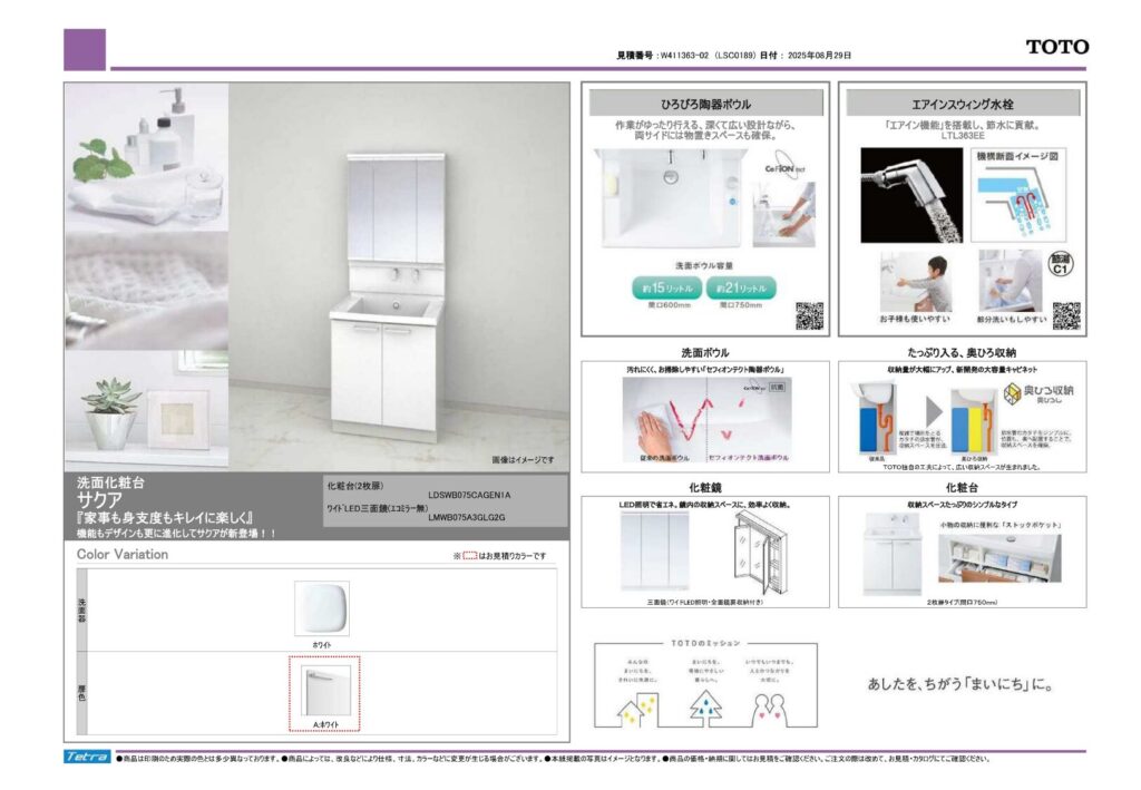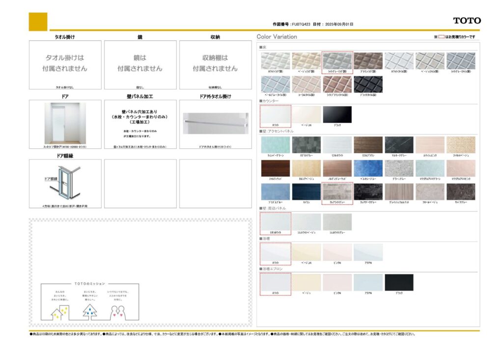 アクセントはクレアライトグレー、周辺はミネラホワイトでまとめ、床にはほっカラリ床を採用。水はけと踏み心地を両立する構造で冷えや滑りに配慮しています。