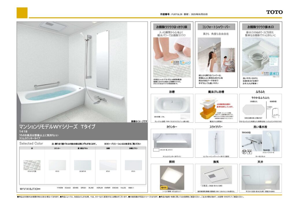 | 取り付け製品名 | TOTO WYシリーズ Tタイプ |