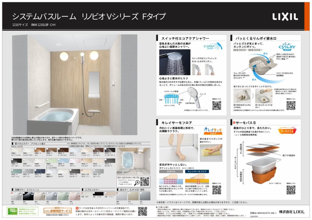 | 取り付け製品名 | LIXIL リノビオVシーリズFタイプ|LIXIL ピアラ |