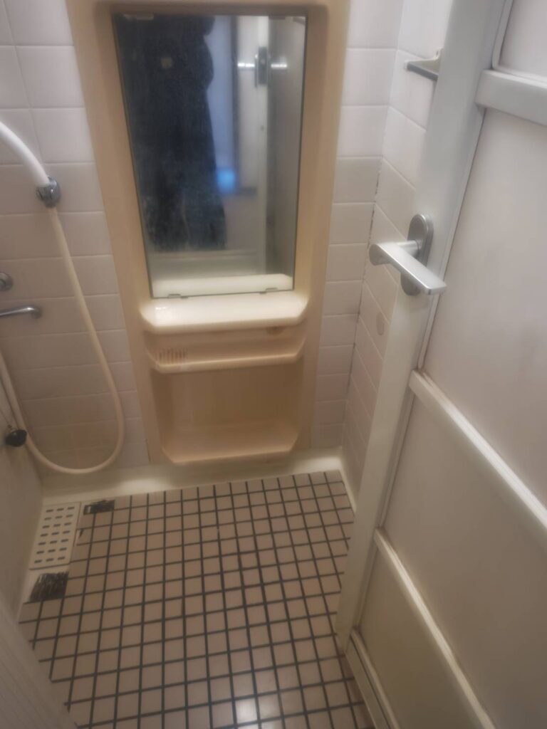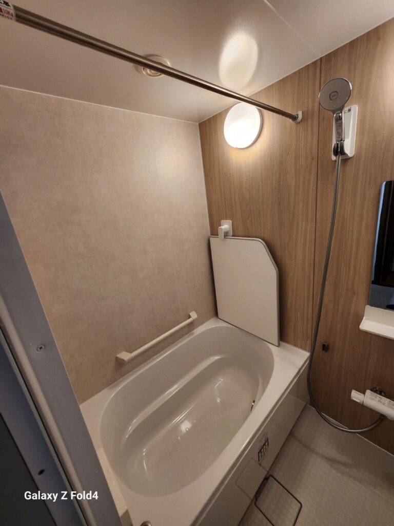 カウンターは設けずマグネット収納で壁面整理しています。エコアクアシャワーを組み合わせてます。使日常動作を基準に整えた浴室リフォームです