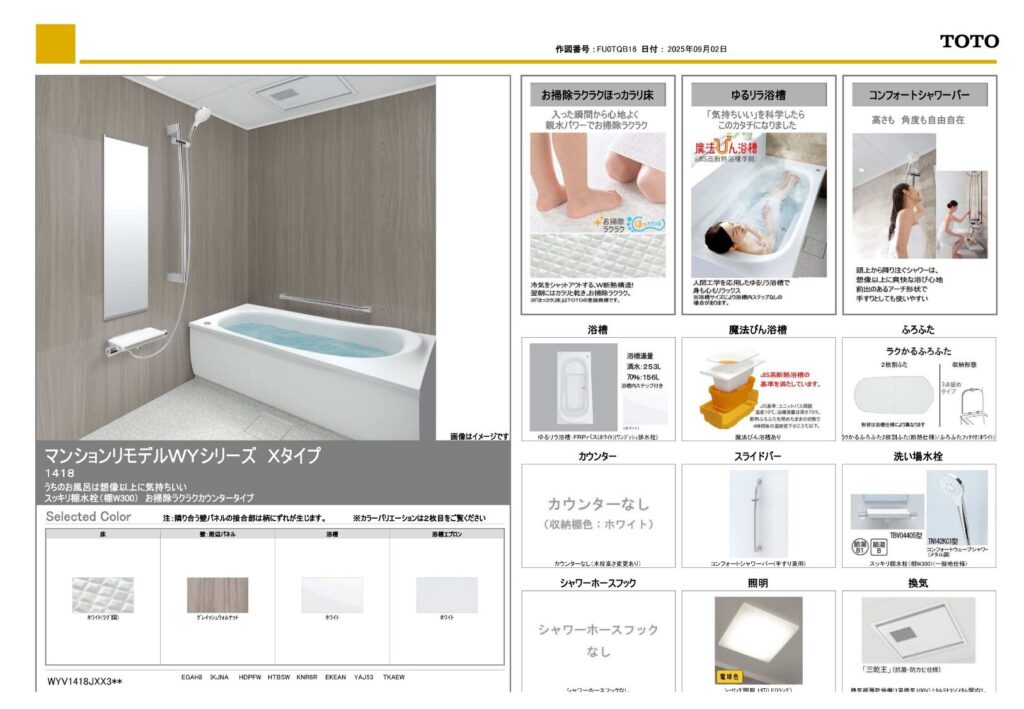 浴室リフォーム 木目と白で奥行きをつくった浴室 TOTO WYシリーズ Xタイプ