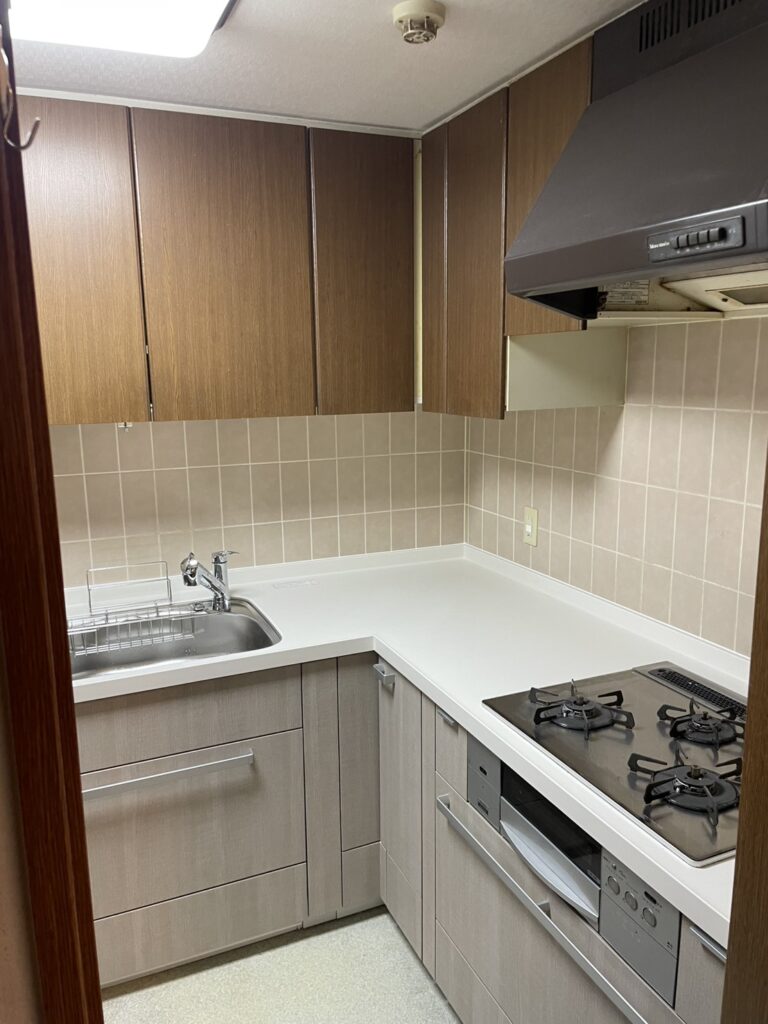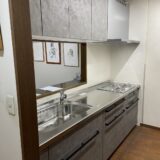 新しくするところと残すところを丁寧に見極めた、バランス感覚のあるキッチンリフォームです。ラスティックアッシュの木目調扉が空間に落ち着きと温かみをもたらし、人造大理石ワークトップ(グロウホワイト)との組み合わせが明るさと自然なぬくもりを調和させています。