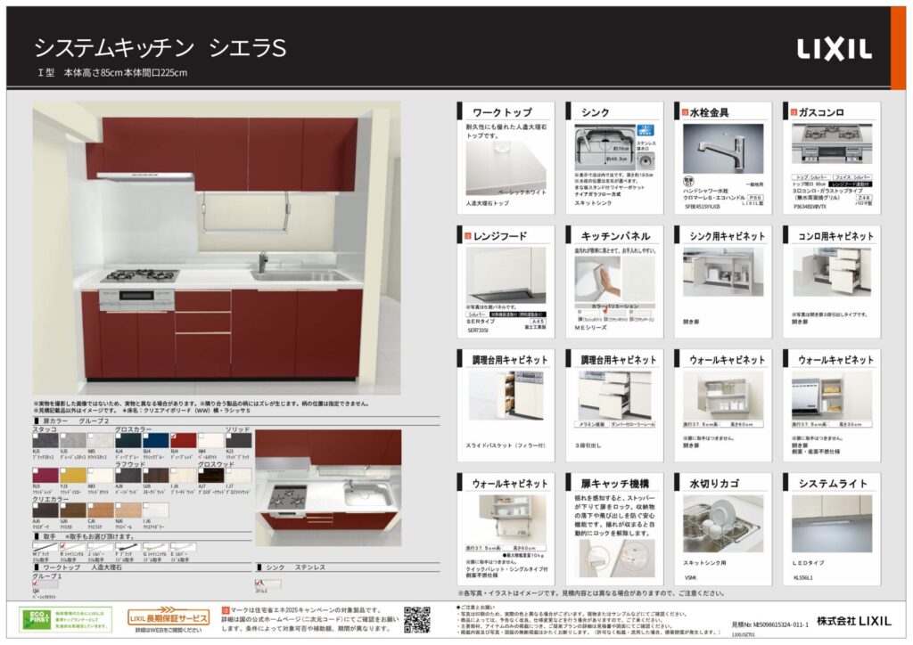 キッチンリフォーム ディープレッドが空間のアクセントになるキッチン LIXIL シエラS