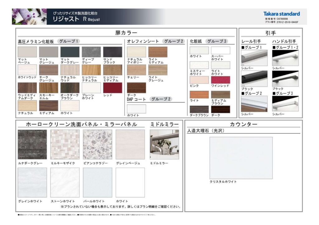 | 取り付け製品名 | LIXIL シエラS|Takara standard リジャスト |
