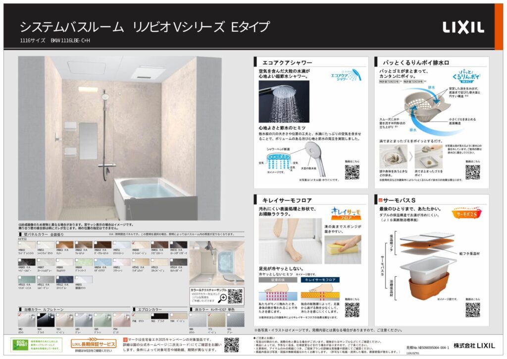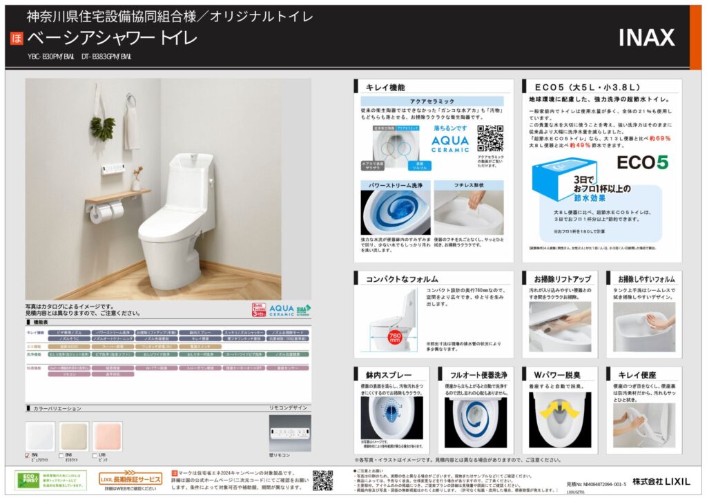 | 取り付け製品名 | LIXIL リノビオVシーリズ Eタイプ|LIXIL ピアラ|LIXIL ベーシアシャワートイレ |