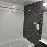 浴室リフォーム 濃淡グレーとブルーで奥行きを持たせた浴室 LIXIL リノビオV