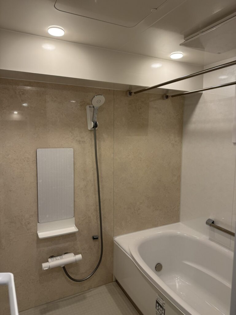 浴室リフォーム ベージュ×ホワイト ミナモ浴槽で広々と使いやすい浴室 LIXIL リノビオV