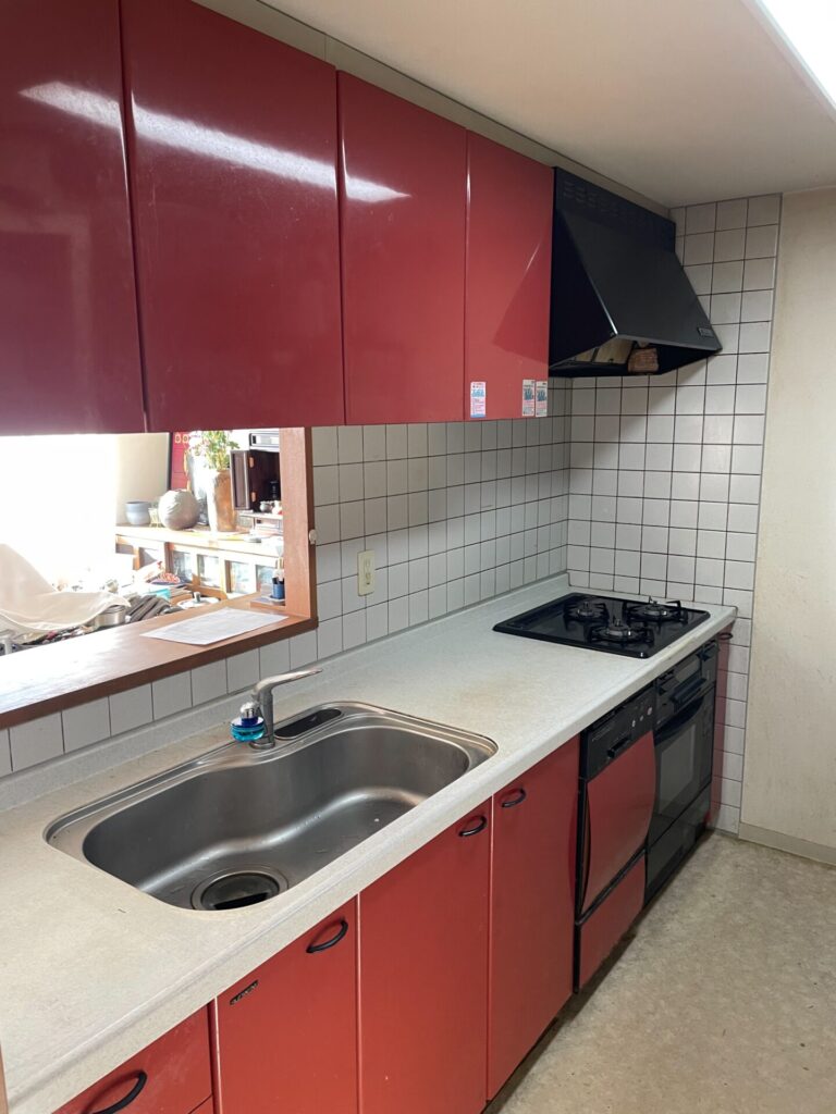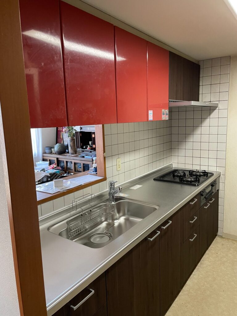 新しい下台は、傷が目立ちにくいステンレス天板とお掃除がラクな木目調の扉。赤い吊戸棚の鮮やかさを、足元の落ち着いたウォルナットがどっしりと受け止め、空間全体が落ち着いた印象にまとまっています。見た目だけでなく、使い勝手も最新です。水が汚れを流してくれるスキットシンクや、小物がスッキリ片付く3段引き出しを取り入れたことで、これまでの家事のバタバタが嘘のようにスムーズになります。