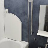 アクセント壁に採用したマーフィルベージュが浴室に自然な温かみと奥行きを与え、ホワイトで統一した床・浴槽・エプロンとの組み合わせで、明るく爽やかで清潔感あふれる空間が生まれています。キレイサーモフロアのホワイト床が光を優しく反射し、ルフレトーンのホワイト浴槽とホワイトのエプロンが、浴室全体をまとまりのある上質な印象に仕上がりました。