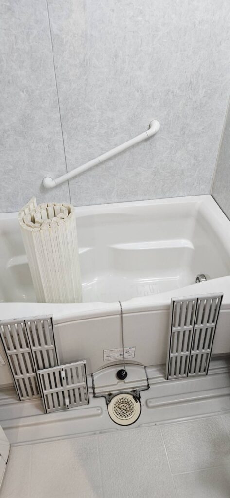 床はホワイトで明るさを保ちつつ、木目の表情が加わることで冷たさを感じにくい仕上がりに。色のバランスが整い、見た目にも気持ちにもゆとりを感じられる浴室になりました。