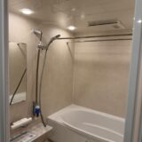 壁パネルはEBホワイトを選定。ホワイトの壁面が浴室全体に広がり明るい印象の空間になっています。エコアクアシャワーを採用しており、広がる水滴でシャワーを浴びることができます。またパッとくるりんポイ排水口は浴槽の排水の流れを利用して排水口内のゴミがまとまりやすい構造です。まとまったゴミを取り除くだけで排水口の掃除を行え日々の掃除が楽になりました。