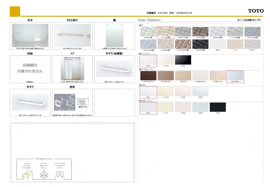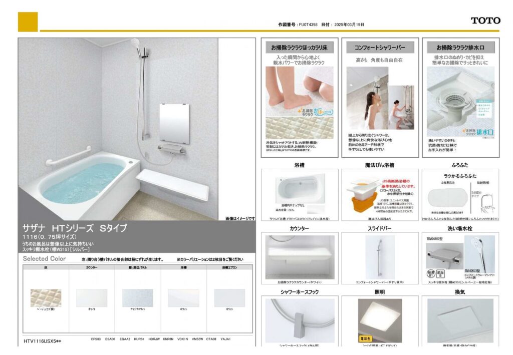 | 取り付け製品名 | TOTO サザナ HTシリーズ Sタイプ |