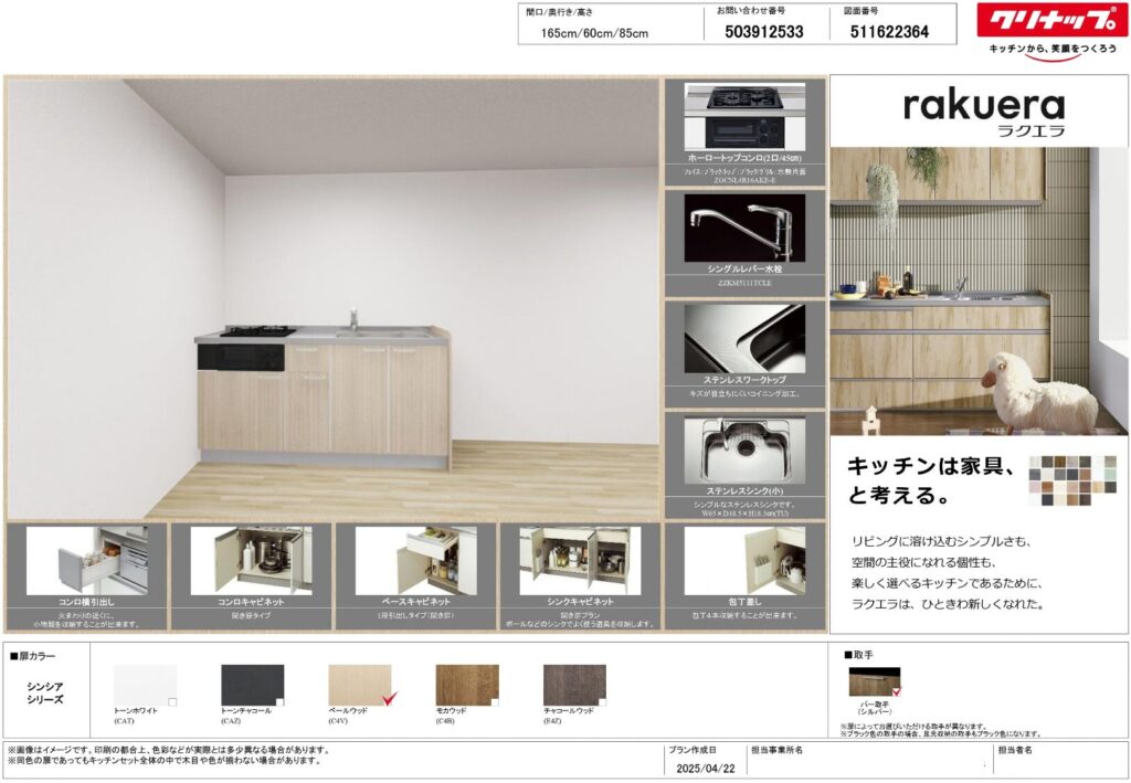 | 取り付け製品名 | クリナップ ラクエラ |