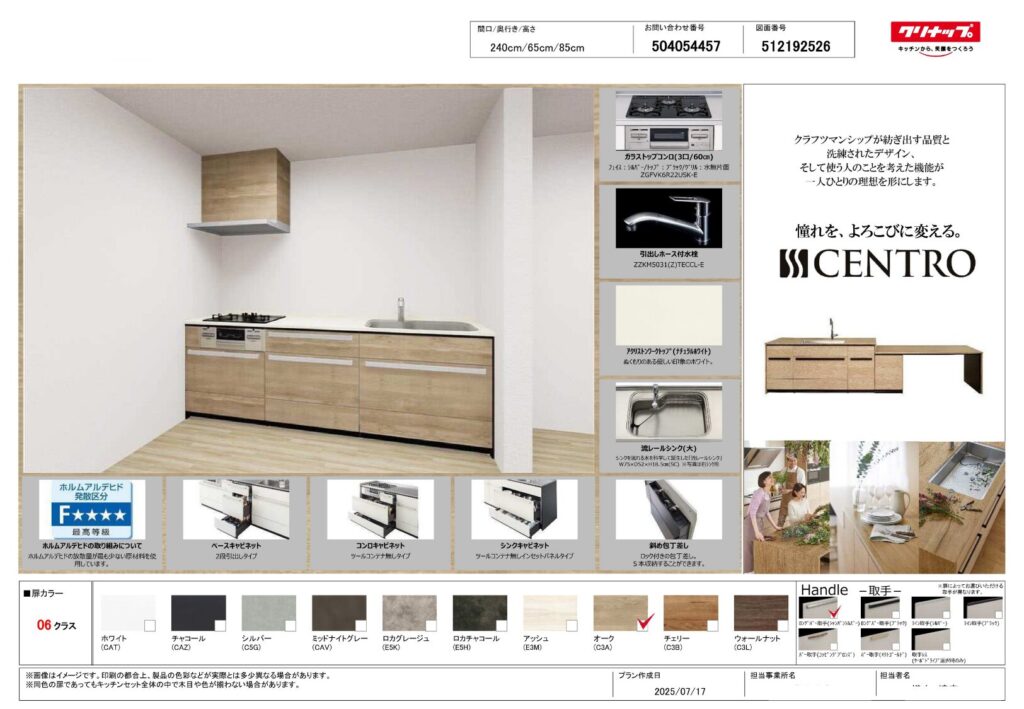 キッチンリフォーム オーク扉の温かみと使いやすさを兼ね備えた クリナップ セントロ