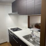 今回のキッチンリフォームでは、LIXILのシステムキッチン「リシェル」を採用し、扉カラーにはグレージュスタッコを選定することで、やわらかな質感と落ち着いた雰囲気に仕上げています。ワークトップには人造大理石トップ(グロウホワイト)を使用し、明るい色味が手元の視認性を高めることで調理中の作業がしやすいキッチンを実現しました。