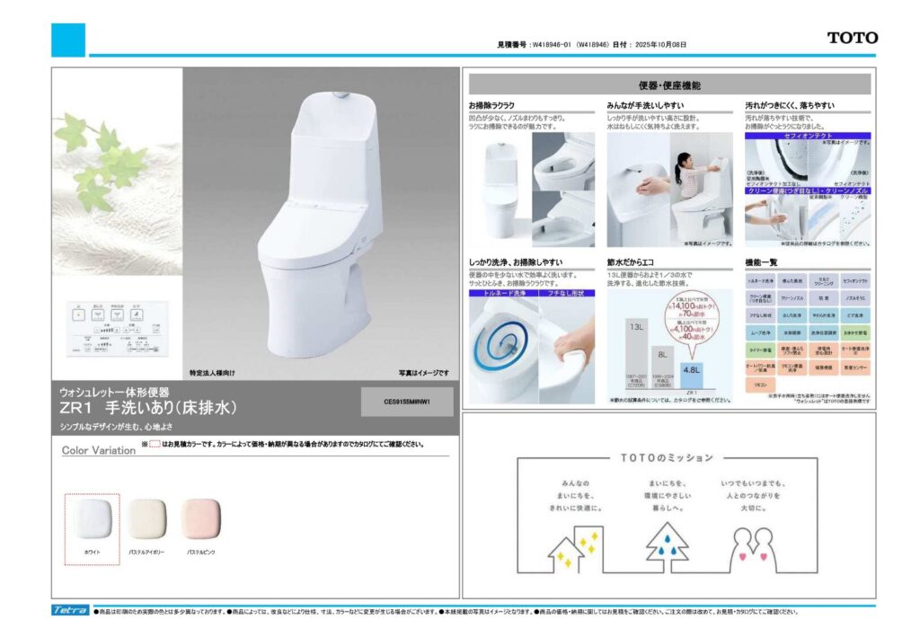 取り付け製品名クリナップ ラクエラ|TOTO ZR1手洗いあり